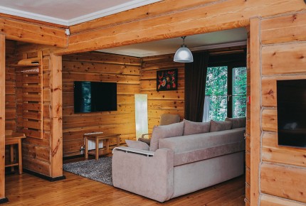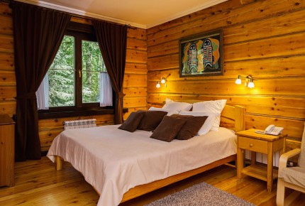 Джуниор сюит: Однокомнатный номер повышенной комфортности в отдельно стоящем бревенчатом доме или в доме на два номера с двумя зонами: гостиная, спальня.