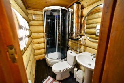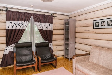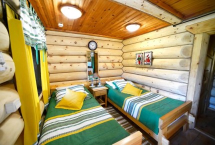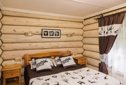 Апартаменты семейные: Трехкомнатный номер повышенной комфортности в отдельно стоящем бревенчатом доме. Две отдельные спальни, туалетная комната с душевой кабиной, обеденная зона, бытовая техника и посуда.
