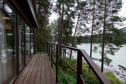 Обширная территория отеля находится в лесном массиве, уютно обустроена и функциональна. Вдоль берега оборудованы костровище, 4 крытых беседки с панорамными видами на Катунь, лодочный причал и бельчатник, который стал настоящей изюминкой отеля. В глубине территории расположена собственная скважина, воду из которой по результатам экспертизы можно употреблять как минеральную.