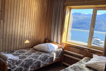 Два трехместных номера с отдельным входом в кедровом доме из оцилиндрованного бревна с верандой. В номере: одна двуспальная кровать, одна односпальная кровать, шкаф, стол, стулья, тумбочки, москитная сетка на окне.
