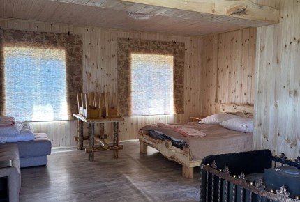 Теплый дом из бруса, с печкой. Санузел (унитаз и раковина) в доме. В доме 1 широкая двуспальная кровать и угловой диван (раскладывается). В доме могут проживать до 4-х человек. |