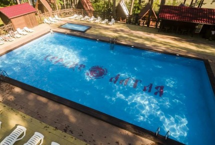 кафе с летней верандой, бассейн, пляж, душ на пляже, баня, бильярд, автостоянка (платно), благоустроенные душевые и летние туалеты, пункт проката, доставка до озера Аи.