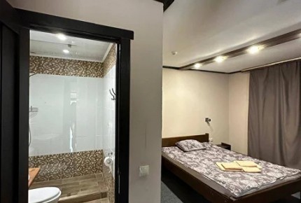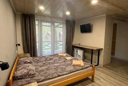 Однокомнатный номер в полублагоустроенном домике (в домике 2 номера с отдельными входами). В номере: полутороспальная и односпальная кровати, тумба-стол, полка с крючками для одежды. Туалетная комната: туалет, умывальник (холодная вода). 2 осн. места + 1 доп. место (на полутороспальной кровати)