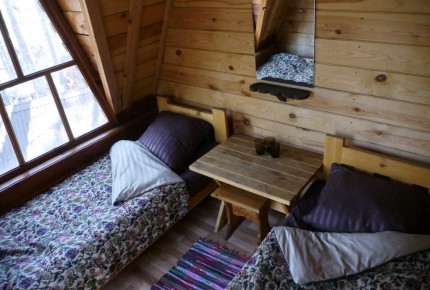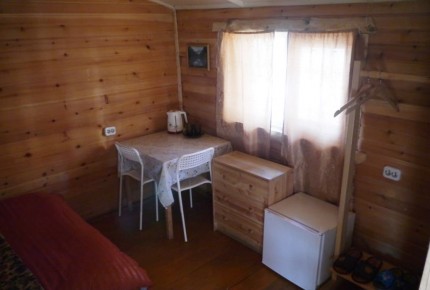 Две категории номеров. Верхний уровень (номера 1 и 2) - с частичными удобствами - в номере туалет, раковина, чайник, посуда, холодильник. Двуспальная кровать. Красивый вид на окружающую природу. Нижний уровень (номера 3 и 4) без удобств. В каждом номере двух-ярусная кровать (двуспальная + односпальная) и диван, который можно разложить в два дополнительных спальных места. Также на нижнем уровне находится большая крытая беседка с кухонной и обеденной зонами. |