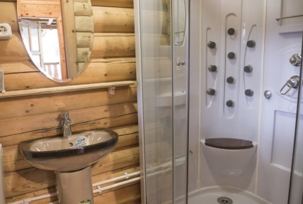 Размещение в тереме: двухместный терем из кедра с удобствами на улице. В номере: две односпальные кровати, вешалка для одежды, зеркало, стул. Возможное размещение: 2 осн.места.