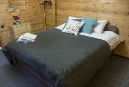 Размещение в домике: 1, 2-х и 3-х комнатные дома из кедра в виде альпийских шале с верандой и отдельным входом в каждый из номеров и удобствами на улице. В номере: две односпальные кровати, тумбочка, стол со стулом, зеркало, вешалка для одежды возле входа. Возможное размещение: 2 осн. места и в двух домиках в наличии 1 доп. место (кресло-кровать).