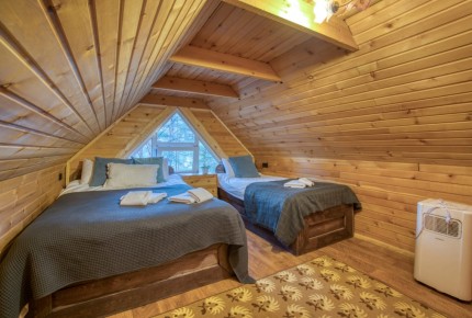 Небольшие отдельные "теремки" с двумя односпальными кроватями. Большие окна позволяют насладиться красотами окружающей природы. |