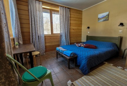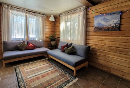 2-й этаж здания: Одна 6-местная, одна 7-местная комнаты. В комнатах – 2-х ярусные деревянные топчаны. Необходимо иметь свои коврики и спальники. Туалеты и умывальники – на территории.