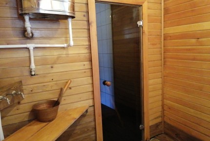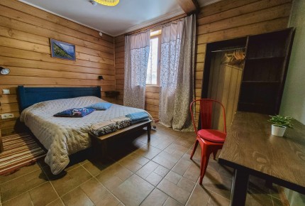 2-й этаж: три 4-местных комнаты, одна 3-местная комната. В комнатах – деревянные топчаны с постельным бельем, тумбочки, крючки для одежды, светильники, розетки. Туалеты и умывальники – на территории.