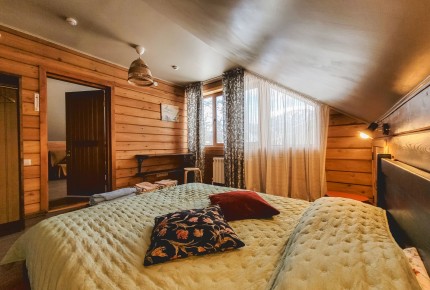 1-й этаж: одна 2-местная комната, две 3-местных комнаты, одна 4-местная комната. В комнатах – кровати, шкафы, тумбочки, светильники, розетки. Этаж отапливается печкой в холодные летние дни.