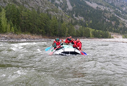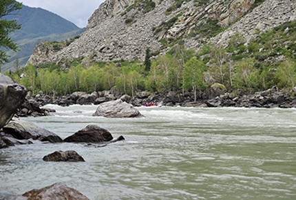 Захватывающее путешествие длиною в 100 км по строптивой и бушующей Катуни выбирают те, кто желает острых ощущений в череде суетных будней. Всего 3 дня на воде, а тур насыщен сменой картинок в режиме нон-стоп! За время пути будут преодолены такие пороги 3 и 4 категории сложности, как «Ильгумень», «Кадринская труба», «Поганки», «Шабаш», «Каянча 1,2», «Скальное сужение», «Тельдектень 1,2» и т.д.
