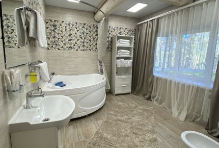 Джуниор сюит: Однокомнатный номер повышенной комфортности в отдельно стоящем бревенчатом доме или в доме на два номера с двумя зонами: гостиная, спальня.