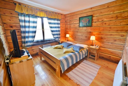 Стандарт: это либо однокомнатный номер в бревенчатом шестиквартирном доме (спальня, туалетная комната с душевой кабиной, мебель и бытовая техника) либо летний однокомнатный номер, в отдельно стоящем бревенчатом доме (двуспальная или 2 односпальные кровати, туалетная комната с душевой кабиной, бытовая техника).