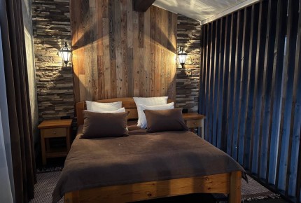 Апартаменты семейные: Трехкомнатный номер повышенной комфортности в отдельно стоящем бревенчатом доме. Две отдельные спальни, туалетная комната с душевой кабиной, обеденная зона, бытовая техника и посуда.