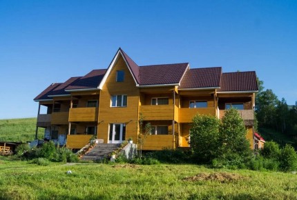 Двухэтажный корпус отеля, оборудованная кухня на первом этаже, холл на втором этаже, ТВ, караоке, видеотека, библиотека, настольные игры, детский уголок, зал для проведения тренингов на 25 человек в стадии запуска, детская площадка, спортивная площадка, костровище, автостоянка, собственная скважина.
