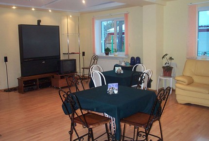 1 этаж – номера, 2 этаж – бильярдная (три стола, мягкая мебель, бар, туалетная комната).