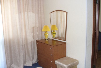 Спальня оснащена двуспальной кроватью, прикроватными тумбами, трюмо (столик), шкафом-купе. Гостевая комната: двуспальный диван, TV, холодильник, шкаф для верхней одежды, стулья, электрический чайник, бокалы. Туалетная комната: душевая кабина, раковина, санузел, комплект полотенец (3 шт на одного гостя). |