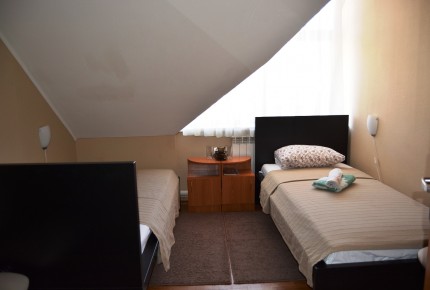 | Двухместный стандарт №301 (3 этаж) | Чайник, телевизор, две односпальные кровать Туалетная комната: WC, раковина, душ |