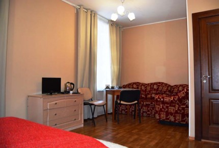 | Полулюкс №202 | Чайник, холодильник, мягкий уголок, холодильник, двуспальная кровать Туалетная комната: WC, раковина, душ |