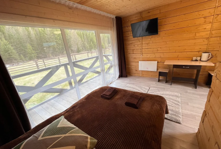 Каждый домик рассчитан на 2-4 человек и оборудован панорамными окнами
