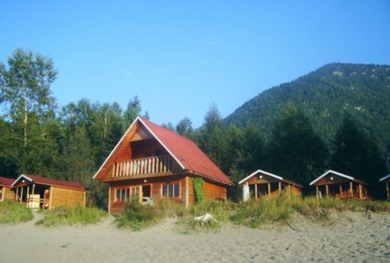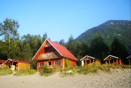 Коттеджи и бунгало стоят прямо на берегу. С крыльца или балкона открывается непрерывно меняющийся сорокакилометровый вид на южную половину Телецкого озера, дельту Чулышмана, высокие горы вокруг.