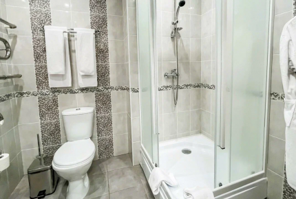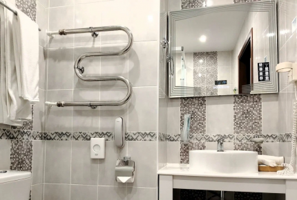 26 кв.м, до 2 человек. Просторная двуспальная кровать и раскладной диван-кровать. Телевизор с плоским экраном и кабельным телевидением. Кондиционер и затемняющие шторы для комфортной температуры и сна. Высокоскоростной Wi-Fi и телефон для связи. Рабочее место: письменный стол, кресла, хорошее освещение. Гардеробная зона: вешалки-плечики, шкаф-купе, тумбы. Чайный набор: электрический чайник, чашки, чай/кофе. Ванная комната: душевая кабина, раковина, санузел. Банные принадлежности: полотенца, мыло, фен, тапочки, халаты, гигиенические средства, косметическое зеркало. Услуги: ежедневная уборка номера, обслуживание в номер, услуги прачечной (платно). Покрытие пола: мягкий ковролин для дополнительного уюта. Номер для некурящих.