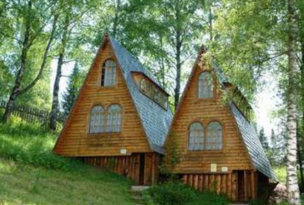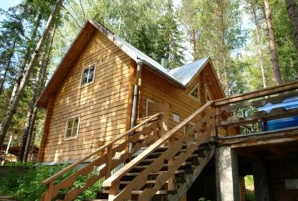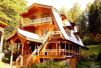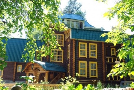 В пятиэтажном корпусе из круглого кедра расположено двадцать комфортабельных двухместных - трехместных номеров, каминный и бильярдный заллы. |