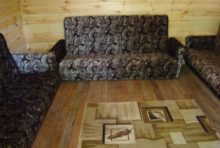 В номере: 3 дивана, тумбочка, стол, стулья, зеркало, вешалка для одежды. Санузел на территории.3 осн.+3 доп. места |