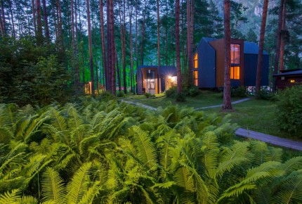 Деревянные двухэтажные терема с большими балконами, террасами, мебелью из натурального дерева для 2-8 человек расположены в “экзотичных” местах - над скалой или в уединенном уголке.