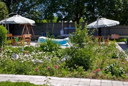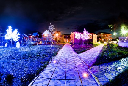 компактная благоустроенная территория, открытый бассейн, большой детский городок, собственный мини-зоопарк, оздоровительные услуги |