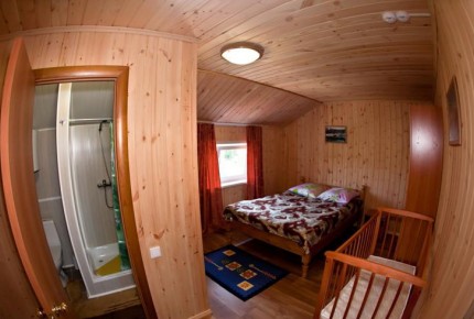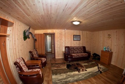 Подходит для большой компании, проведения праздничных мероприятий с комфортным размещением до 22 человек. Большой банкетный зал и кухня, 5 номеров на 4-5 спальных места.