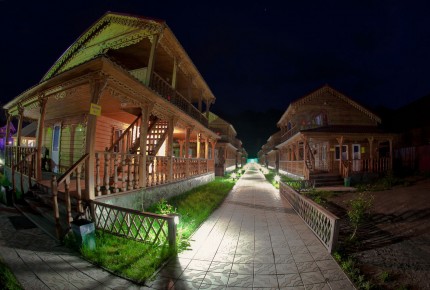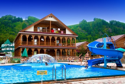 На территории комплекса находится кафе с русской и восточной кухней, работает бар. А по вечерам играют музыкальные группы.